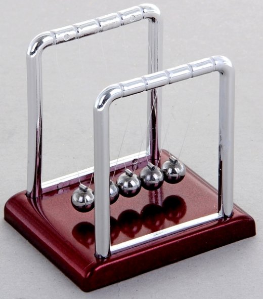 Продолжительность работы такого оригинального подарка напрямую зависит от веса и размера шариков: чем больше их диаметр и чем они тяжелее, тем дольше будет длиться данный процесс, и наоборот. Сам маятник — это механическая система, придуманная Исааком Ньютоном для демонстрации преобразования энергии различных видов друг в друга: кинетической в потенциальную и наоборот. В отсутствие сил трения система могла бы действовать вечно и систему можно было бы назвать вечным двигателем, но в реальности это недостижимо.