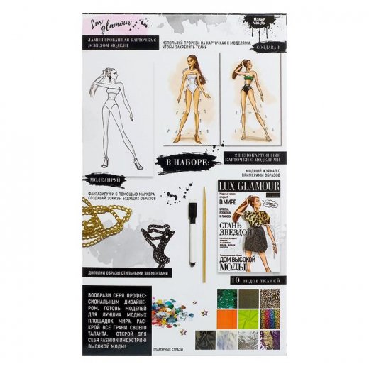 Набор для творчества «Дом высокой моды. Гламур.» позволит малышке раскрыть творческий потенциал, развить чувство стиля и воплотить в жизнь образ для своей любимой модели!