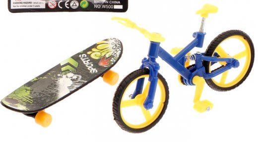 Ваш малыш любит кататься на скейтборде и не готов расставаться с ним не на минуту? Тогда подарите своему малышу замечательный набор из двух пальчиковых скейтборда и велосипеда. Ваш малыш сможет вдоволь на кататься на своем игрушечном скейтборда, а когда захочет чего то новенького, всегда сможет опробовать свой быстрый миниатюрный велосипед. С таким набором ребенок может делать самые разные трюки, которые поразят всех его друзей.