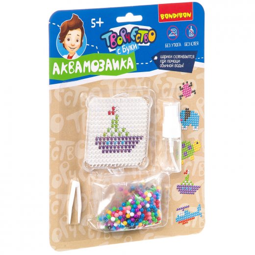 Аквамозаика Bondibon синий набор 5 фигур – это весьма интересный и занимательный подарок для юного любителя мозаик. Аквамозаика под воздействием жидкости превращается в объёмную фигурку, с которой можно играть. Юному любителю творчества необходимо лишь выбрать шаблон, затем выложить бисер по трафарету и смочить полученную фигурку водой. И вуаля – произведение искусства готово! Самые любимые поделки можно носить с собой как брелок.