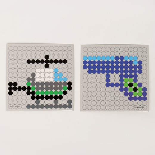 - Разместите схему под прозрачной основой. С помощью пинцета выложите на основе детали соответствующих цветов.
