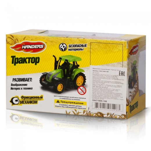Фрикционная игрушка Handers "Трактор" - модель с мощным фрикционным двигателем. Быстро разгоняется и при движении издаёт характерный звук.