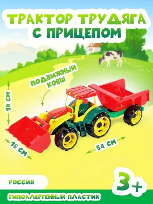Купить Машину Трактор Трудяга с прицепом в Новосибирске Вы можете в магазине настольных и развивающих игр "Игры Почемучек"