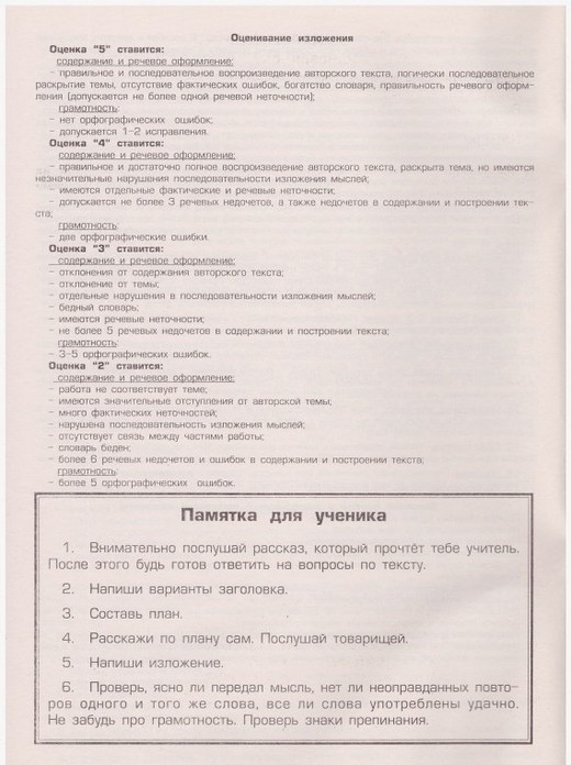 Научить детей правильной и красивой речи, как устной, так и письменной, - сложная задача, требующая комплексного подхода. Один из важнейших ее компонентов - написание изложений. В этом пособии представлена методика, пользуясь которой вы научите ребенка писать грамотные и содержательные изложения. Передавая своими словами небольшие рассказы и отрывки художественной прозы, ребенок обогащает свою устную и письменную речь, развивает логическое мышление, научается правильно, содержательно и убедительно высказывать собственные мысли. Яркая, образная, логичная, отвечающая всем языковым нормам речь - основной показатель интеллектуального уровня ребенка. Кроме того, работа над изложениями помогает научиться хорошо писать сочинения. Ведь, как уже сказано, овладение устной и письменной речью требует комплексного подхода, одно помогает другому. При работе над изложениями, решается очень важная задача - умение переводить устную речь в письменную. В пособии подобраны специальные упражнения, обучающие ребенка выделять элементы, допустимые лишь в устной речи, и находить им соответствующую замену в речи письменной. Передавая услышанный текст своими словами, ребенок может помнить смысл сказанного, но забыть какие-то конкретные слова. Поэтому мы уделяем большое внимание подбору синонимов и антонимов, даем соответствующие словари. Также в пособии отрабатывается способность ученика чувствовать различные тонкости образования слов и их употребления. Даны упражнения, где ребенок находит и исправляет различные лексические и синтаксические ошибки. Чрезвычайно важна логическая связность текста. Поэтому подобран целый комплекс упражнений, помогающих избавиться от логических ошибок разного типа. От выполнения необходимых подготовительных заданий дети переходят к основной работе - написанию изложений. Они могут быть простыми и более сложными. Ребенок учится составлять план излагаемого текста, придумывает заглавие. Словом, на всех этапах работы предполагается комплексный подход, помогающий усовершенствовать отдельные элементы и свести их воедино.