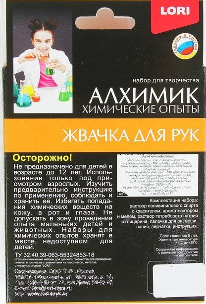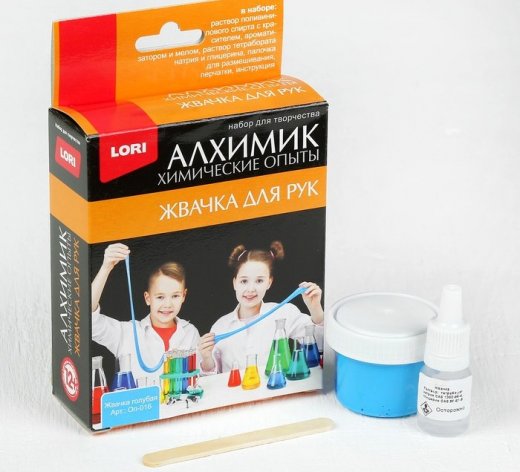 Наборы для опытов "Химические опыты Алхимик" помогут родителям ответить на многие вопросы подрастающего почемучки и провести уникальные химические опыты, наглядно увидев исследуемое явление. Этот набор познакомит с процессом изготовления жвачки для рук. В комплект входит все необходимое для проведения опыта, важно лишь следовать инструкции и соблюдать правила безопасности.