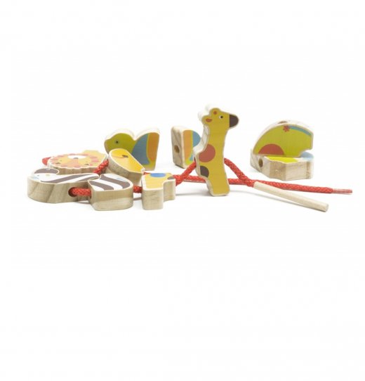"Бусы Сафари" - увлекательная игра-шнуровка для малышей. В набор входят десять деревянных элементов пяти африканских животных, шнурок и мешочек для хранения бус. Животные разделены на 2 части, для того чтобы ребенок в правильном порядке самостоятельно смог собрать фигурки и нанизать их на шнурок. Ребенок может импровизировать, соединяя половинки самым причудливым образом и получая смешные и забавные сочетания. Детали сделаны так, чтобы легко ложиться в детские ручки и малыш не будет испытывать проблем с узнаванием животных. Шнуровка не имеет острых углов и тяжелых деталей, а сами фигурки из новозеландской сосны окрашены нетоксичными красками.