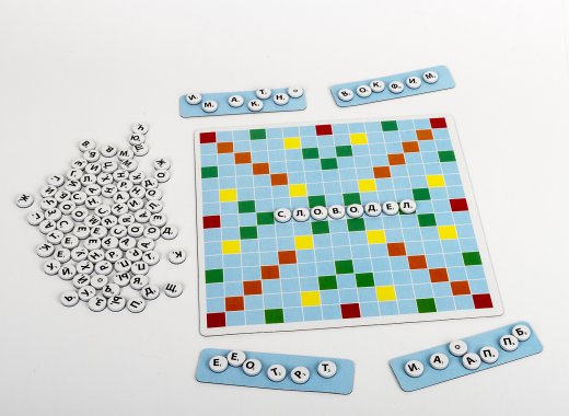 игра "словодел": фишки с буквами — 120 шт;