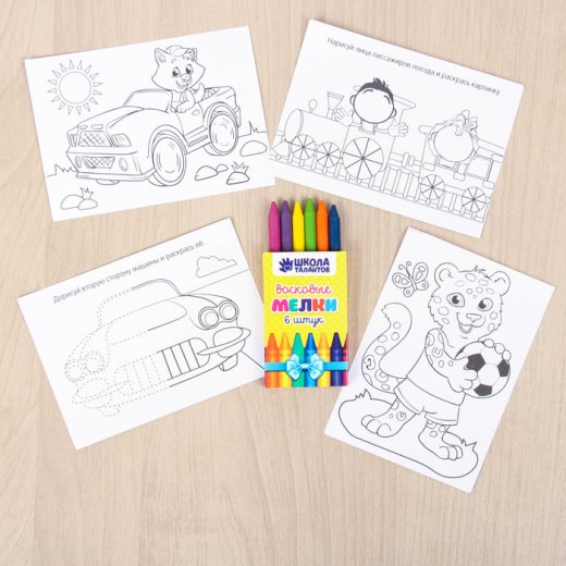- восковые карандаши, 6 цветов;
