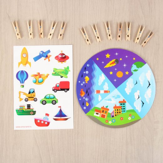 - развивающая игра (12 прищепок, круг (d = 20 см), персонажи)