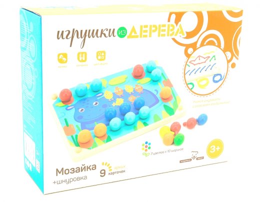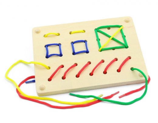 Это прекрасная возможность для ребенка выучить цвета, развивать мышление и творческое воображение. Кроме прочего мозаика-шнуровка отлично развивает у детей мелкую моторику рук и улучшает координацию движений, что особенно важно в раннем возрасте. Отличная игрушка, которая способна увлечь не на один час и занять вашего малыша полезным и интересным делом. Весь набор выполнен из экологически чистых материалов.