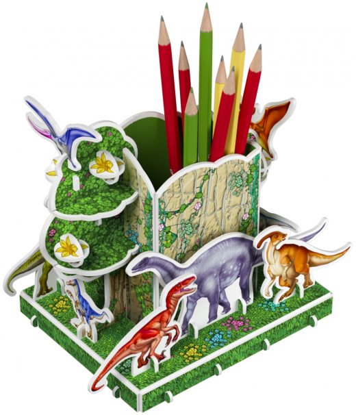 3Д пазл-карандашница – это не только вместительная подставка для хранения карандашей, фломастеров, других письменных принадлежностей, но и яркий предмет интерьера детской комнаты в виде яркого домика с фигурками динозавров. Карандашница поможет ребенку научиться не разбрасывать карандаши, а хранить в одном месте. А сделанная своими руками, с интересными персонажами, станет особенно любима ребенком. Такая карандашница может стать отличным подарком родным и друзьям.