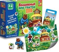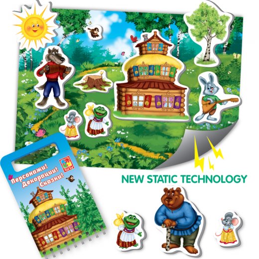 В комплект входят красочная декорация, которая крепится на любую металлическую поверхность, фигурные магниты в виде сказочных персонажей и сценарий сказки. Дети с удовольствием будут играть с магнитными фигурками, разыгрывать постановки или придумывать свои интересные сюжеты.