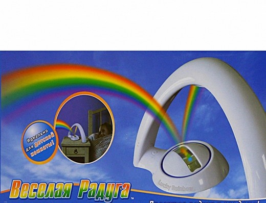 Проектор Веселая радуга – поможет создать природный феномен у вас в комнате. Наслаждайтесь блестящей радугой в любое время в вашей комнате вместе с проектором «Весёлая радуга»! Радуга - уникальный и красочный феномен, который возникает, когда солнечный свет проходит сквозь водяной пар в атмосфере. Крошечные капли воды пара действуют как миллионы призм, раскладывающих белый свет в спектр на составляющие: красный, оранжевый, желтый, зеленый, голубой, синий и фиолетовый цвета. Радуга появляется в небе как дуга, поскольку лучи солнечного света практически параллельны, и потому что капли воды имеют сферическую форму. Если бы земная поверхность не находилась в поле нашего зрения, то радуга выглядела бы как замкнутый круг. Радуга - это оптическая иллюзия, она не находится в небе. Ее появление зависит от местоположения зрителя, положения солнца и наличия водяного пара в воздухе.