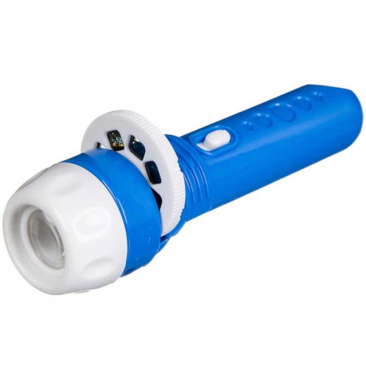 В наборе: фонарик-проектор, диски со слайдами (3 штуки), батарейки AG13 (3 штуки).
