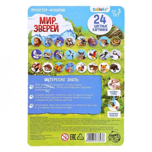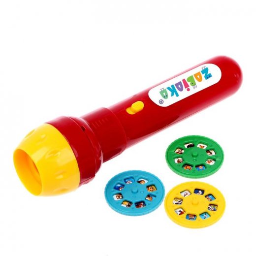 В набор входят: проектор-фонарик и 3 слайда (24 цветные картинки).