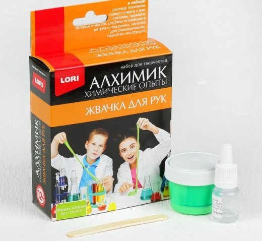 Купить Химические опыты Алхимик Жвачка для рук зеленая в Новосибирске Вы можете в магазине развивающих и настольных игр "Игры Почемучек"