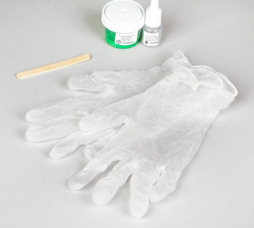 Состав набора: химический реактив, пакет, палочка для размешивания, перчатки, инструкция.