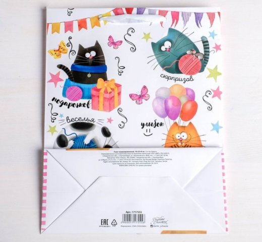 Купить Пакет подарочный Забавные коты 23 × 27 × 8 см в Новосибирске Вы можете в магазине развивающих и настольных игр "Игры Почемучек".