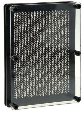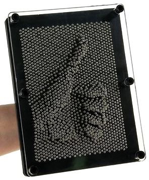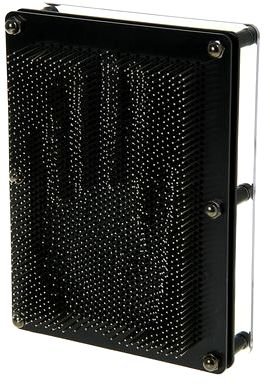 Сувенир Скульптор - это прибор, представляющий собой пластину-основание, на которой закреплены пластмассовые стержни (гвоздики), закрытые прозрачной передней панелью. Чтобы создать слепок, опустите устройство горизонтально-прозрачной поверхностью вверх - так все стерженьки должны упасть. Затем расположите экспресс-скульптор вертикально и приложите ладонь или какой-нибудь предмет к ровной поверхности гвоздиков. Ваше творение готово! Объёмный отпечаток получается точным до мелочей.