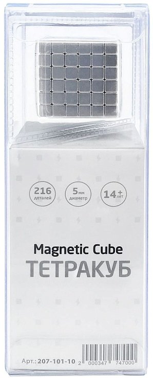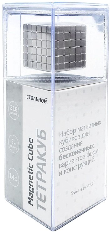 Магнитный конструктор ТетраКуб Magnetic Cube – это магнитная головоломка, состоящая из 216 штук полностью идентичных 5-миллиметровых кубических деталей. Его очень легко собирать и разбирать, и при желании можно сложить любую фигуру как в двухмерной, так и в трехмерной плоскости, а также на практике поэксперементировать с магнитным полем. Каждый обладатель такой необычной магнитной забавы придумает собственное применение тетракубу! Эти кубики изготовлены из неодима, железа и бора (совершенно безопасных материалов).