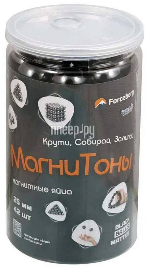 Мощный набор из 42 крупных магнитных шариков диаметром 25мм. Эти шарики еще называют “темная материя”. Возможно, из-за таинственного черно-блестящего цвета, а может быть из-за необычных свойств этих магнитов.