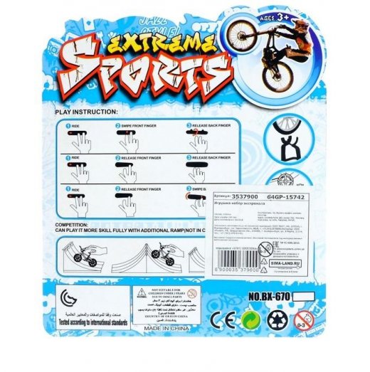 Набор экстремала – приятно порадует активных ребят! Это маленького размера велосипед и минидоска для скейтборда, предназначенные для того, чтобы катать их пальцами руки, повторяя все трюки, на которые способны реальный велосипед и минидоска для скейтборда. Преимущество набора состоит в том, что он доступен в любую погоду, дождь за окном не помешает. Поэтому вы в домашних условиях сможете насладиться любимым занятием.