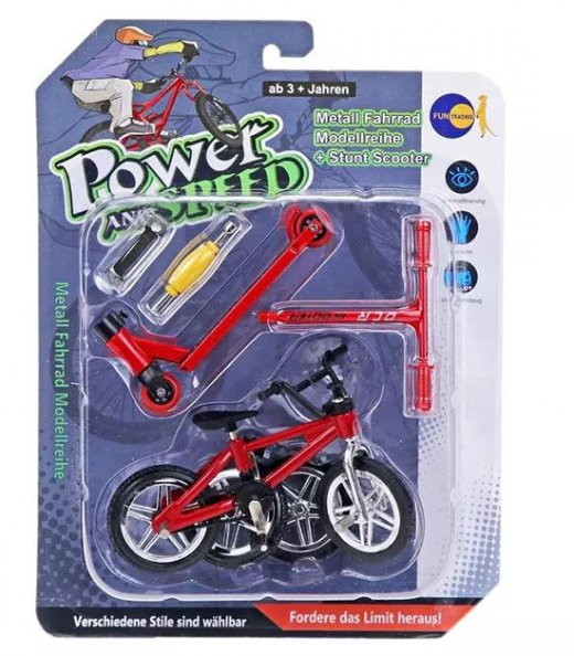 Набор – приятно порадует активных ребят! Это маленького размера велосипед и самокат, предназначенные для того, чтобы катать их пальцами руки, повторяя все трюки, на которые способны реальный велосипед и самокат. Преимущество набора состоит в том, что он доступен в любую погоду, дождь за окном не помешает. Поэтому вы в домашних условиях сможете насладиться любимым занятием.