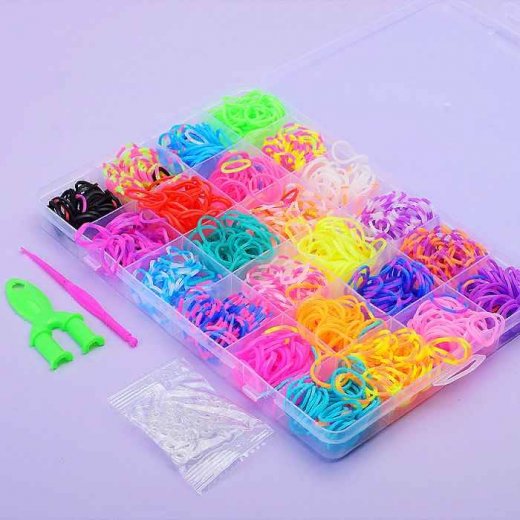 В наборе: - станок для плетения браслетов. - крючок. - 900 резинок. • Для детей от 8 лет.