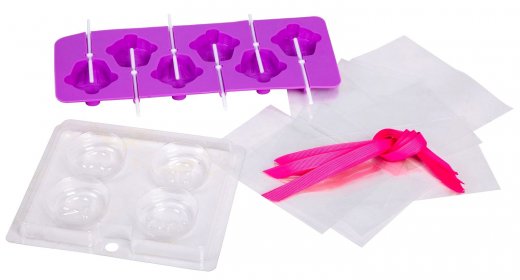 Состав набора: форма для шоколадных конфет; форма для шоколадных монет; 6 прозрачных подарочных пакетов; 6 лент; инструкция.