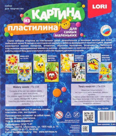 Картина из пластилина из серии "Морские просторы" - это яркое развивающее и увлекательное предложение для ребенка. Цель задания - создание объемных шедевров на морскую тему. С помощью пластилина различных цветов, контурной основы для картины и стека ребенок сможет смастерить изображение кораблика и рыбки. Заполните пластилином белый рисунок - и персонажи на картинке оживут. В процессе изготовления картины у ребенка формируется понятие о цвете, развивается мелкая моторика, внимание, образное мышление, усидчивость.