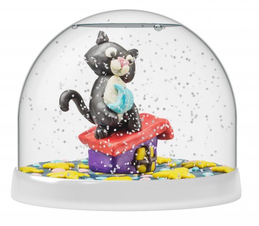 Создай свой неповторимый сувенир! Слепите композицию и поместите ее внутрь шара. Добавьте блестки и специальную жидкость, и ваш снежный шар готов. Инструкция предлагает пошаговую схему сборки двух композиция Бабочки и Котик. Встряхните его и понаблюдайте, как маленькие снежинки медленно кружатся внутри. Это настоящее волшебство!