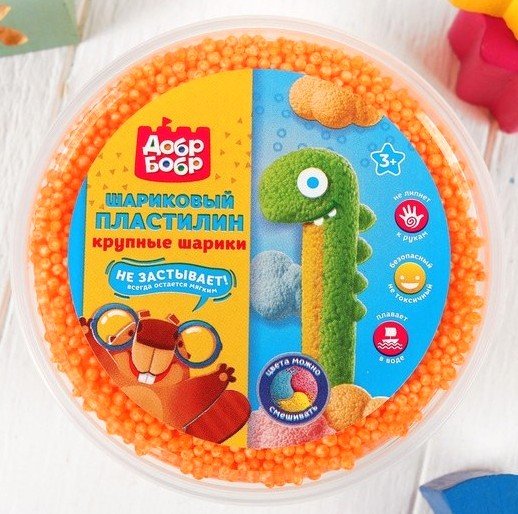 Шариковый пластилин крупнозернистый ДобрБобр – это изумительный набор для детского творчества. Шариковый пластилин - необычный пластилин состоит из маленьких шариков, напоминающих искрящиеся бусинки, соединенных тончайшими клеевыми нитями. Этот пластилин очень легкий, воздушный и совсем не липнет к рукам. Цвета легко смешиваются друг с другом, образуя разноцветную шариковую массу.