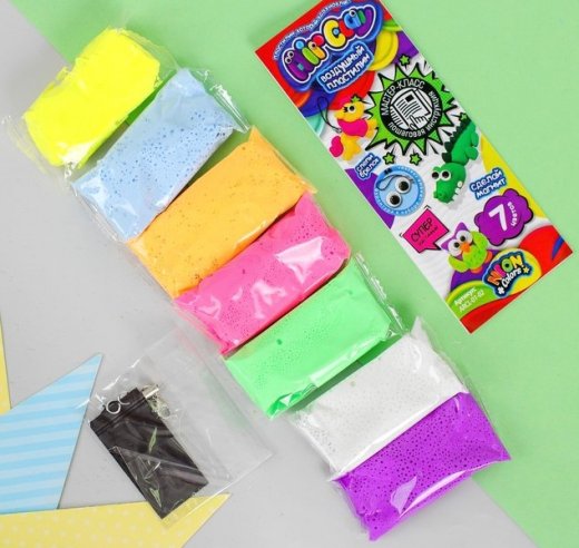 Состав набора: пластилин 7 цветов, карабин, «живые глазки» 2 пары, магнитная лента, инструкция.