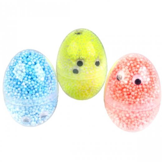 Состав набора: 3 контейнера-яйца с шариковым пластилином с блеском, 3 пары глаз.