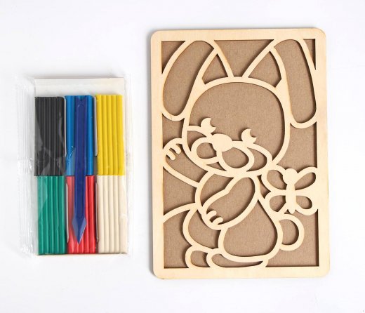 Создайте яркую, красивую картинку из пластилина "Зайка"! Возьмите основу для лепки и заполните ее пластилином, дополнительно вы можете раскрасить деревянные линии. Цвета пластилина легко смешиваются друг с другом, позволяя получать дополнительные оттенки.