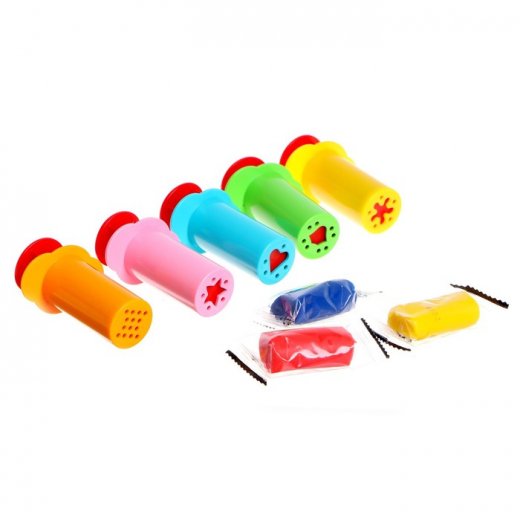 Набор из 5 шприцев-давилок для выдавлиния теста, пластилина и т.д. + в наборе 3 пакетика теста.