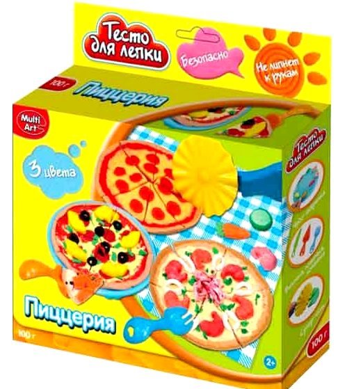 Набор теста для лепки Пиццерия – послужит замечательным подарком и непременно понравится ребенку. В наборе представлены 3 цвета пластичной массы - теста, из которого ребенок сможет слепить "пиццу", используя пластиковые формочки и игрушечные приборы. Пластичная масса хорошо лепится и сохраняет заданную форму, а также не липнет к рукам и не пачкает поверхность.