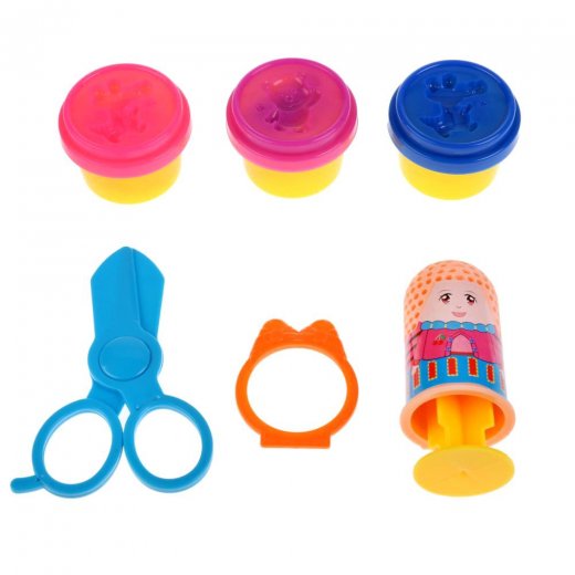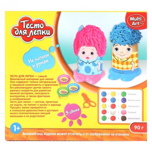 Состав набора: 3 баночки с тестом (90 гр.), ножницы, 3 фигурки, 3 наклейки с изображением человечка.