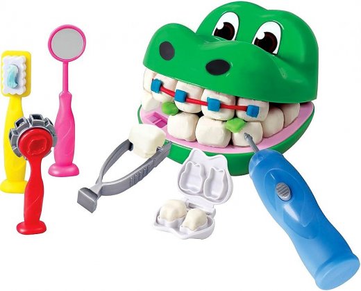 «Зубастый крокодил» – это увлекательный набор для детского творчества, с помощью которого можно почувствовать себя в роли настоящего дантиста! Сначала ребёнку предстоит слепить крокодилу язык, а затем, используя специальные приспособления, сделать ему из теста зубы и брекеты. Если у крокодильчика вдруг заболят зубы, их можно будет вылечить или удалить с помощью инструментов, входящих в состав игрового набора. А ещё зубастого крокодила можно научить чистить зубки!