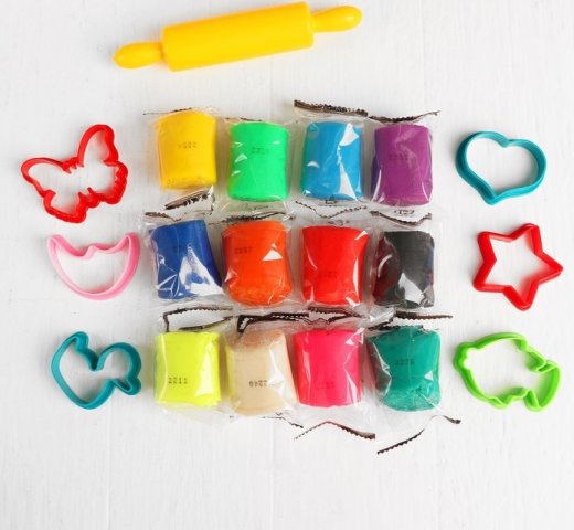 Купить Набор для лепки Тесто-пластилин, 12 цветов, 6 формочек + скалка: 16 см в Новосибирске Вы можете в магазине настольных и развивающих игр "Игры Почемучек"