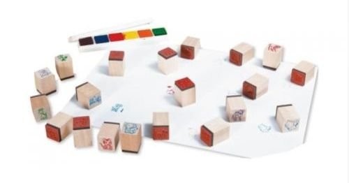 Набор деревянных печатей в форме кубиков с разнообразными рисунками на прорезиненной основе предназначен для творческих занятий ребенка. К набору прилагается комплект подушечек с краской 6 цветов: коричневый, синий, красный, желтый, оранжевый, зеленый. Прикоснувшись печатью к подушечке, следует затем поставить печать на чистый лист бумаги, в результате чего получится отпечатанное цветное изображение. Чтобы не работать вслепую, на верхнем основании кубика нанесено цветное изображение рисунка, который отпечатается на бумаге. Используя мелкие рисунки на печатях, ребенок может составить целую композицию, коллаж, оформить красивые поздравительные открытки для друзей и родителей. Занятия с набором печатей развивают оформительские и творческие способности ребенка, дизайнерскую фантазию, воображение. Веселый творческий процесс доставляет детям положительные эмоции. Все предметы набора изготовлены из экологически чистых материалов, безопасных для здоровья ребенка.