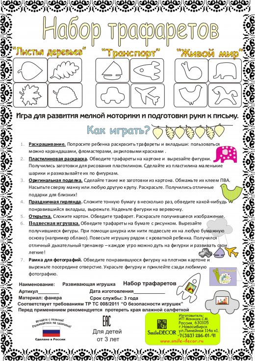 Купить набор трафаретов "Листья деревьев" в Новосибирске Вы можете в магазине развивающих и настольных игр "Игры Почемучек".