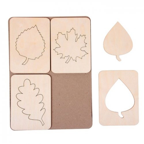 Набор трафаретов "Листья деревьев" – это развивающая игра для вашего ребенка. В деревянных дощечках вырезаны контуры листьев деревьев (береза, дуб, тополь, клен). В эти контуры вставлены детальки-вкладыши соответствующей формы. Ребенку необходимо обводить контуры листьев, дорисовывать и раскрашивать картинки, которые получились в результате. Все детали головоломки выполнены из качественной древесины и приятны на ощупь.