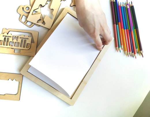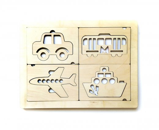 Набор трафаретов "Транспорт" – это развивающая игра для вашего ребенка. В деревянных дощечках вырезаны контуры животных. В эти контуры вставлены детальки-вкладыши соответствующей формы. Занятия с трафаретами очень просты - ребенок может проводить по прорезям пальчиками или получить яркие изображения на бумаге с помощью карандашей или фломастеров. Зафиксируйте лист бумаги под трафаретами. Обводите сначала внутренние элементы трафаретов, затем, убрав внутреннюю часть, обводите внешние силуэты транспорта. Убрав прямоугольную форму трафарета, можно создать свой произвольный фон для неповторимой картины!
