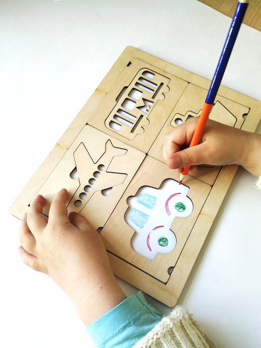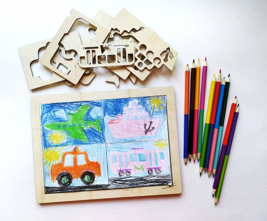 Купить Набор трафаретов с подложкой Транспорт в Новосибирске Вы можете в магазине развивающих и настольных игр "Игры Почемучек"