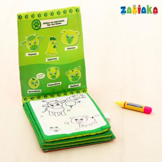 Водные раскраски отлично займут ребенка в дороге, в гостях. Книга мягкая из ткани, поэтому она не помнется и не порвется.