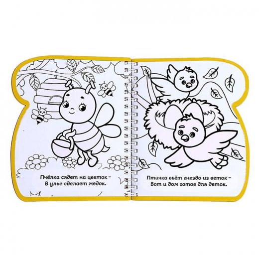 Изделие выполнено из плотного картона. Внутри есть 8 страниц для раскрашивания. Во время рисования малыш познакомится со зверушками и расширит кругозор.