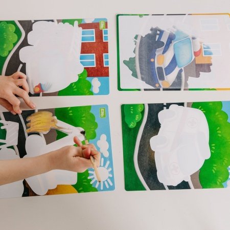 Купить Многоразовую вонуюя раскраску Полезные машины в Новосибирске Вы можете в магазине настольных и развивающих игр "Игры Почемучек"
