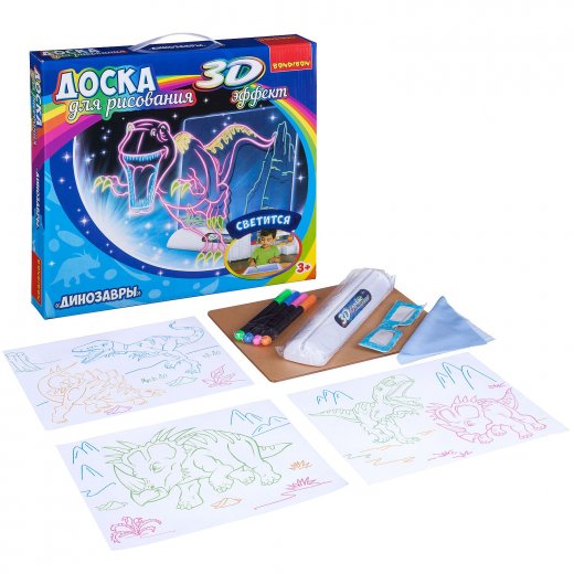 Купить Доску для рисования 3D эффект Динозавры в Новосибирске Вы можете в магазине развивающих и настольных игр "Игры Почемучек"