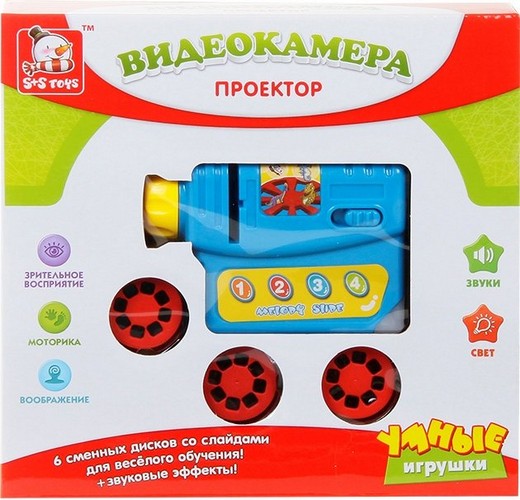Игрушка на батарейках Проектор – будет отличным подарком для любознательного ребенка. При помощи специального освещения изображение со слайдов проецируется на любую ровную поверхность, и юный киномеханик может просматривать картинки на дисках, как один, так и вместе с вами или с друзьями. Непременно такое занятие приведет в восторг любого ребенка, а кроме удовольствия ребенок получает еще и пользу. Способствует развитию цветовосприятия, внимательности и усидчивости.